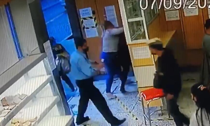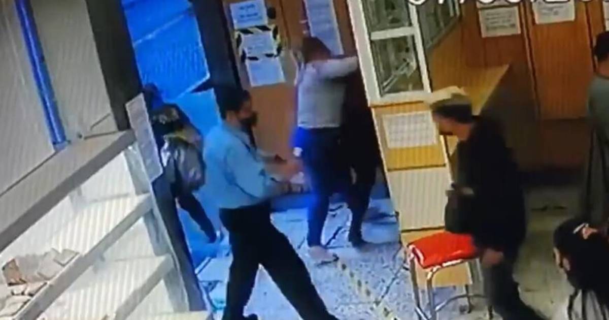 En un video de 01:32 minutos, se ve cómo de pronto la señora violenta empieza a pegar y patear a otra, hasta que la arrinconó. Inerte, el vigilante vio sin intervenir cómo transcurrió la pelea y sólo se dispuso a recoger las pertenencias de la agredida que volaron por el piso. Otra policía intervino hasta que la agresora soltó del cabello a la otra.