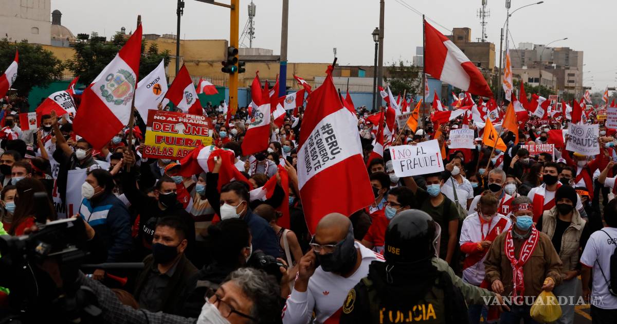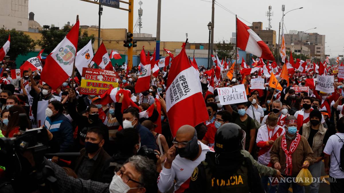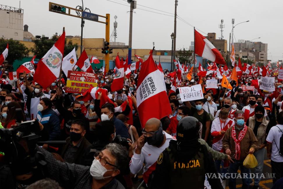 LIMA, PER.- La candidata presidencial peruana Keiko Fujimori protagonizó ayer un mitin de protesta en el centro histórico de Lima junto a miles de sus seguidores que marcharon para afirmar la existencia de un intento de “fraude en mesa” tras el balotaje que disputó con el izquierdista Pedro Castillo.