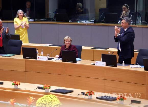 Líderes europeos ovacionan y dan gracias a Angela Merkel