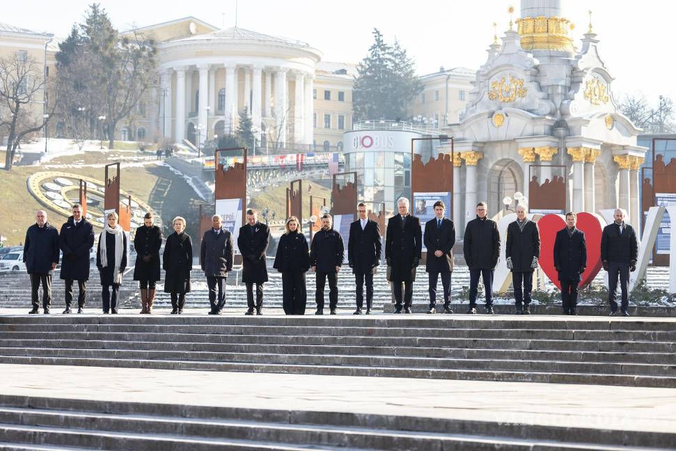 Una docena de líderes de Europa y Canadá viajaron hoy a la capital de Ucrania para conmemorar el tercer aniversario de la invasión rusa, en una muestra de apoyo continuo de algunos de los aliados más importantes de Kiev a la nación en guerra