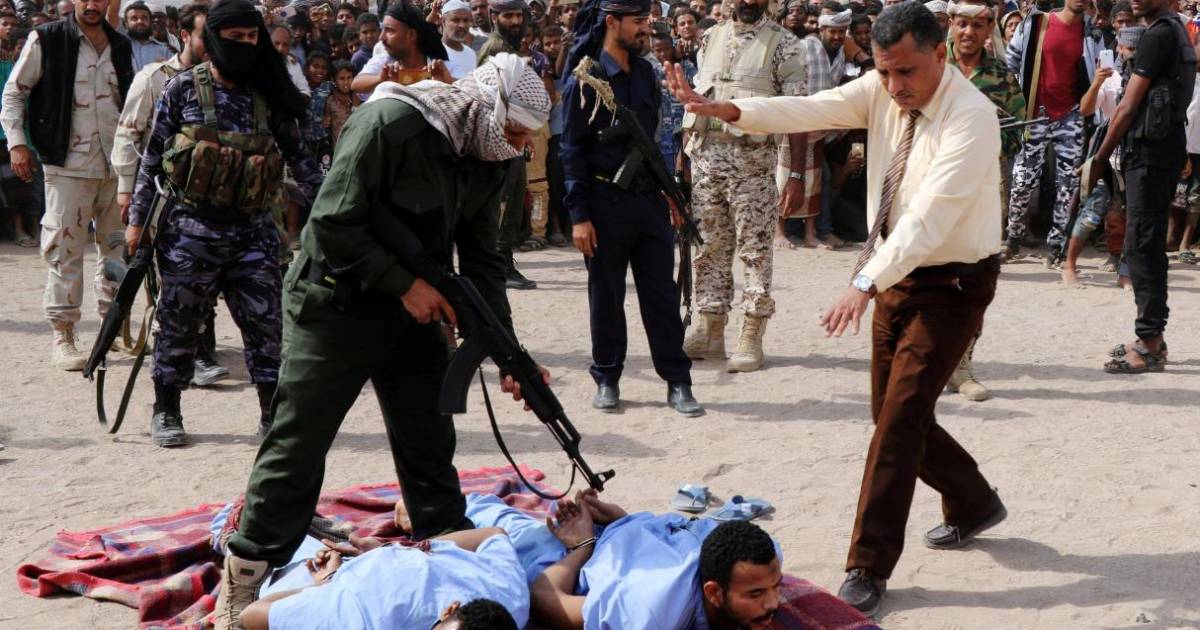 La ejecución se realizó en una plaza pública de a ciudad portuaria de Adén, donde cientos de personas se reunieron para ver a los dos hombres ser asesinados a tiros mientras que la multitud aullaba.