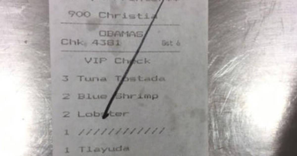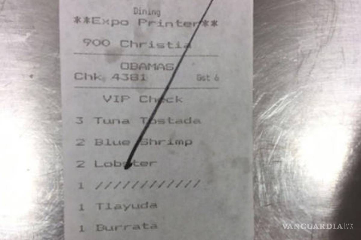 Leon Krauze publicó la fotografía de la comanda de los Obama: ordenaron -entre otras cosas- de entrada tostadas de atún y camarones azules a la veracruzana, de segundo tiempo tlayuda, enmoladas, y langosta para terminar la cena con carnitas de pato y costillitas con cebollín y aguacate.
