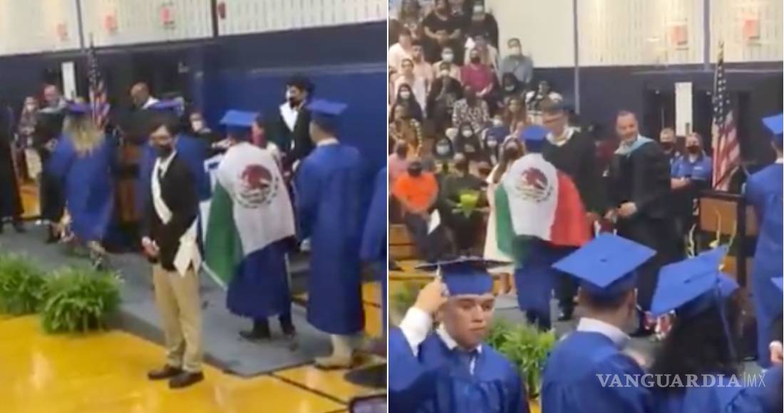 Maestros niegan diploma a alumno por portar bandera de México en EU