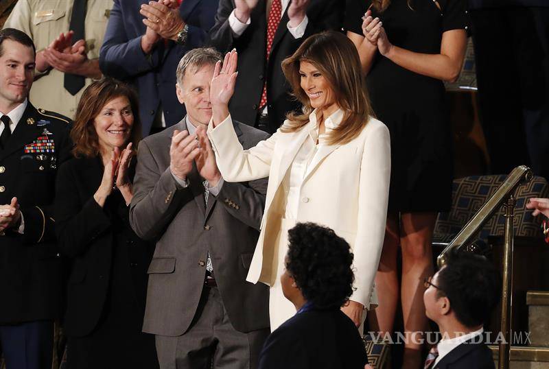 La portavoz de la primera dama, Stephanie Grisham, explicó a la cadena CNN que Melania llegó al Congreso antes que Trump porque quería ayudar y "honrar, como los héroes que son", a las 15 personas que la Casa Blanca ha invitado a presenciar el discurso