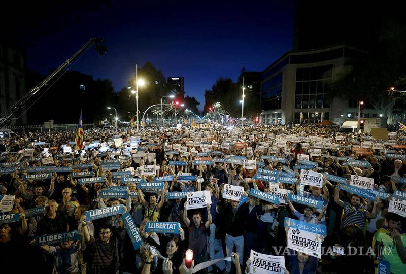 Barcelona (España).- Miles de personas se concentraron hoy en el centro de Barcelona para pedir la libertad de los líderes de las dos asociaciones independentistas que están en prisión preventiva por un delito de sedición, al tiempo que calificaron su detención como de "presos políticos".