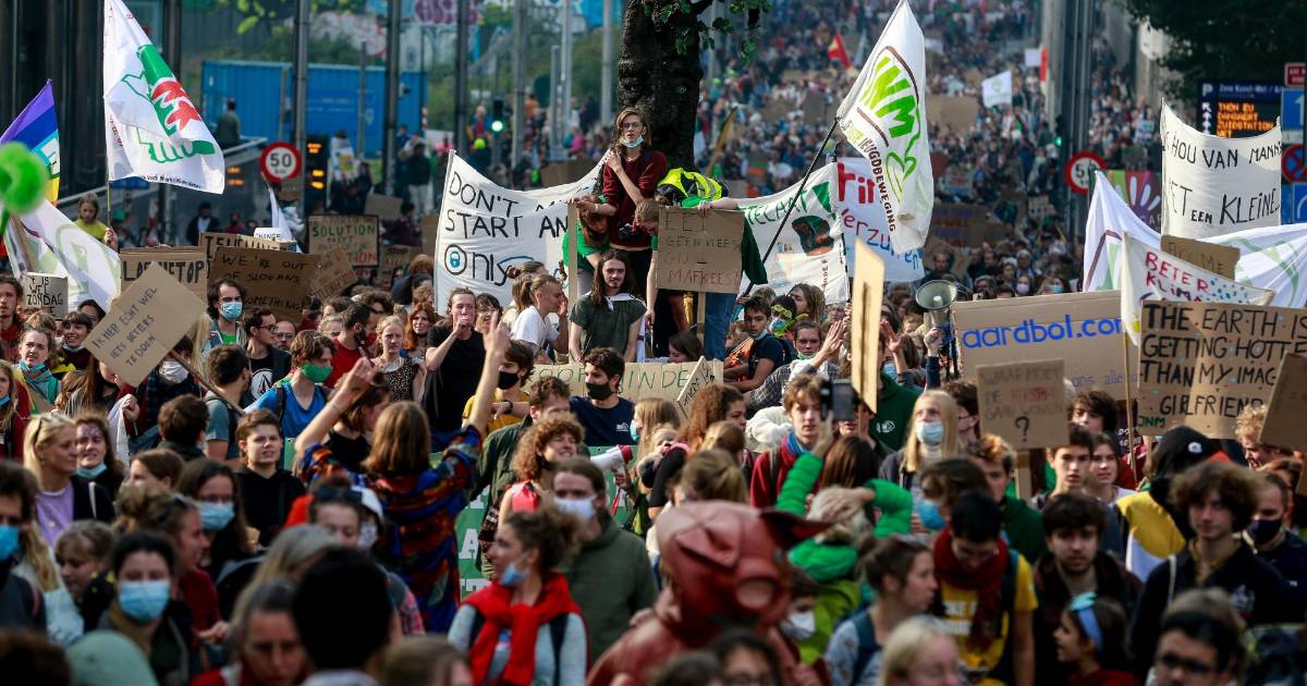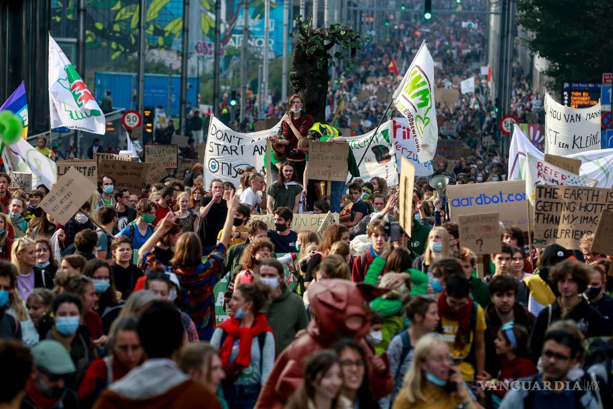 BRUSELAS, BEL.- Miles de jóvenes y adultos marcharon en Bruselas el domingo para presionar a los líderes mundiales a tomar medidas más audaces para combatir el cambio climático en la cumbre climática de la ONU en Glasgow que da inicio este mes.
