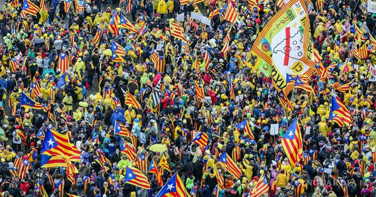 La columna de manifestantes había avanzado antes en un ambiente festivo por el barrio europeo de la ciudad con un mar de banderas independentistas y carteles con reclamos a la UE.