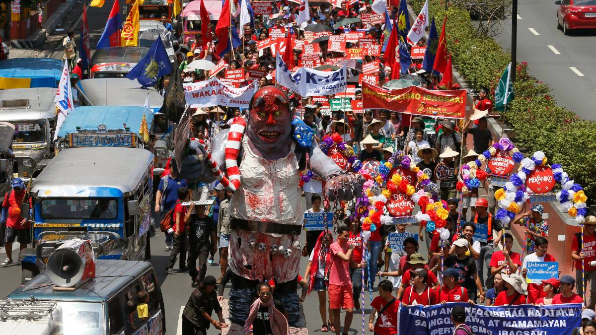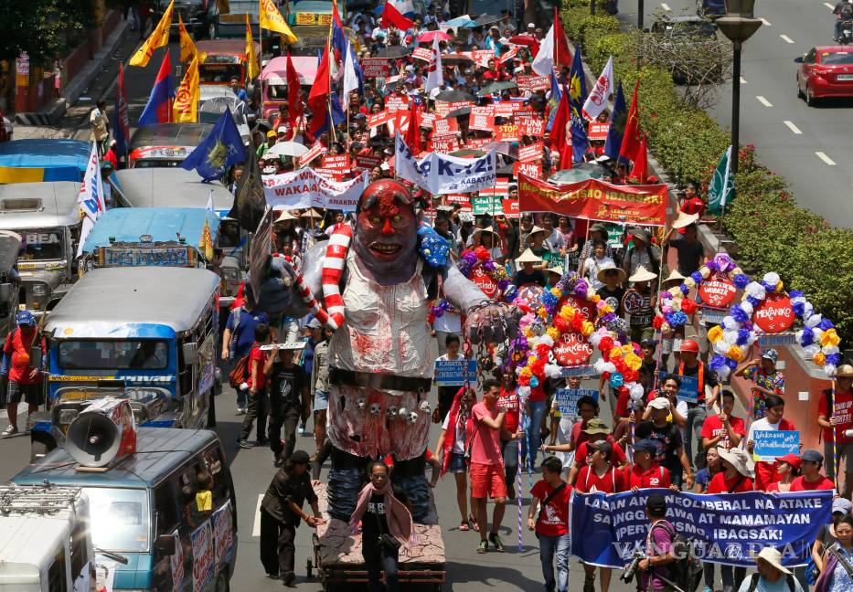En Manila unos 2 mil manifestantes de izquierda se enfrentaron con policías antimotines que usaban escudos y cañones de agua para evitar que los activistas llegaran a la embajada estadounidense. Las autoridades reportaron 20 manifestantes heridos.