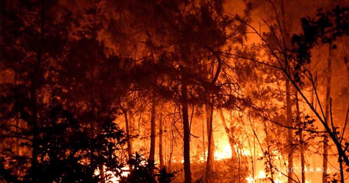 Las llamas avanzan hacia el pueblo de Candeda (Carballeda de Valdeorras) en España.EFE/Brais Lorenzo