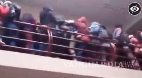 En varios videos que circulan por las redes sociales se ve a los estudiantes amontonados protestando en los corredores que dan a un salón, donde se realizaba la asamblea, momentos antes de que una de las barandas cediera y los ocho jóvenes cayeran desde el cuarto piso.