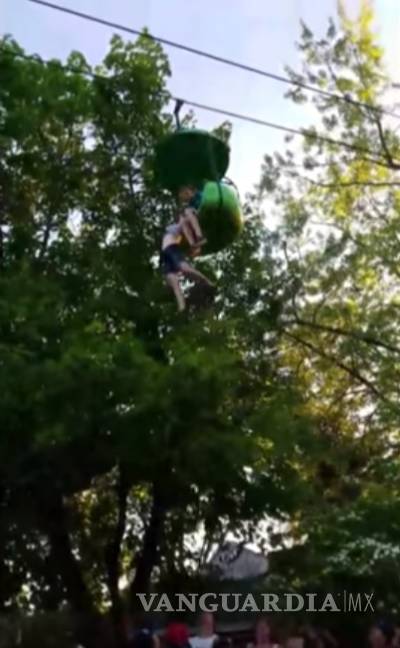 Testigos señalan que pudieron salvarla, debido a que la menor quedó colgando por unos segundos, dando tiempo a que los asistentes pudieran aglomerarse debajo del juego para atraparla.