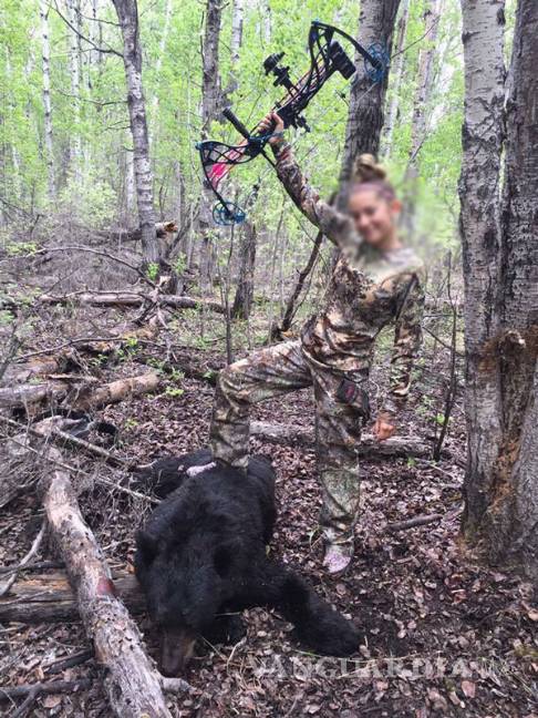 El hecho ocurrió en Canadá, sin embargo, la serie de imágenes protagonizadas por la orgullosa cazadora han dado la vuelta al mundo y han despertado la furia de los defensores de animales.