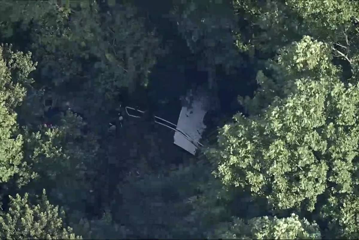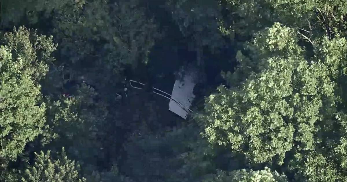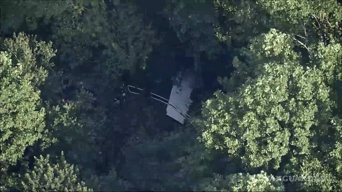 Imágenes aéreas mostraron a la avioneta en el bosque, con varios pedazos de escombros cerca. Camiones de bomberos y otros vehículos de emergencia rodearon la escena.