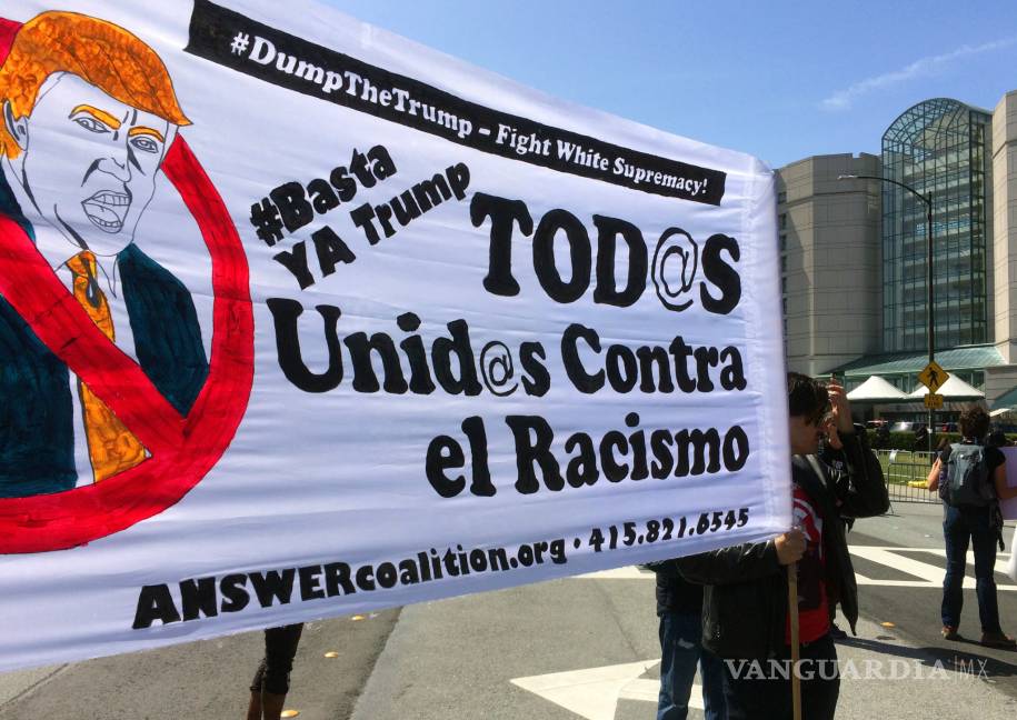 California.- Varios cientos de manifestantes opositores a Donald Trump se reunieron el viernes afuera del donde el magnate tenía agendado hablar ante republicanos, y algunos atravesaron una barricada de acero y se aproximaron a la entrada del edificio.