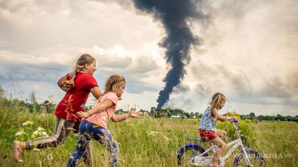 Berlín- La imagen ganadora del concurso que se lleva a cabo en Alemania “Bajo las oscuras nubes de la guerra”, del fotógrafo y documentalista polaco Patryk Jaracz, “simboliza la luz de la resiliencia y la alegría infantiles que se abren paso en la oscuridad de las guerras, los conflictos y las catástrofes globales”, detalla el comunicado.