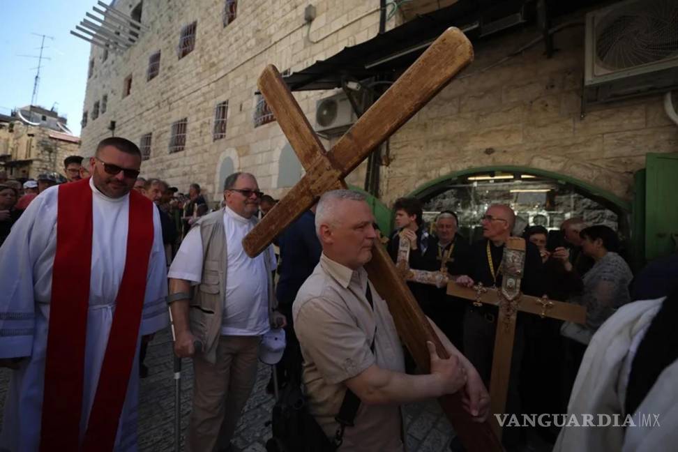 A pesar de las bombas israelíes siguen cayendo en Gaza, peregrinos locales y extranjeros no quisieron perderse la celebración del Viernes Santo en la Ciudad Vieja de Jerusalén, que cuenta con un amplio dispositivo de seguridad