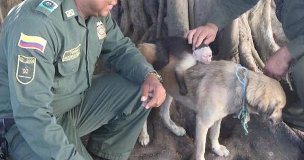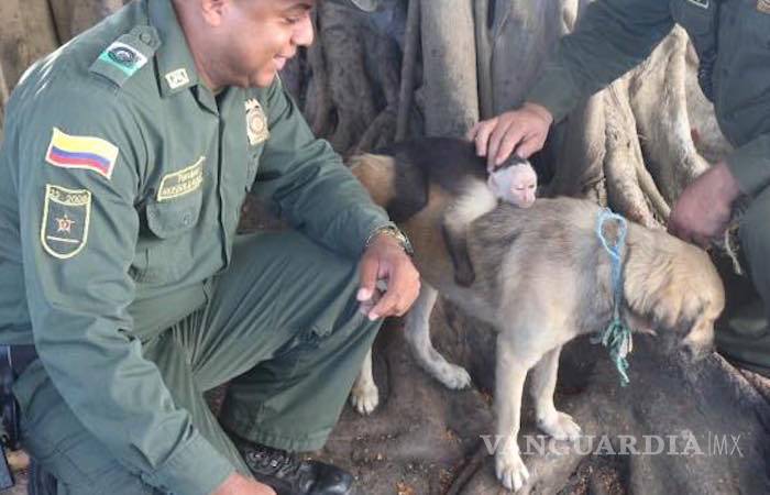 Colombia.- La Policía de Protección Ambiental y Ecológica de Cartagena de Indias, Colombia, informó este viernes sobre el rescate de un mono cariblanco o capuchino que había sido criado por una perra callejera desde que era un bebé.