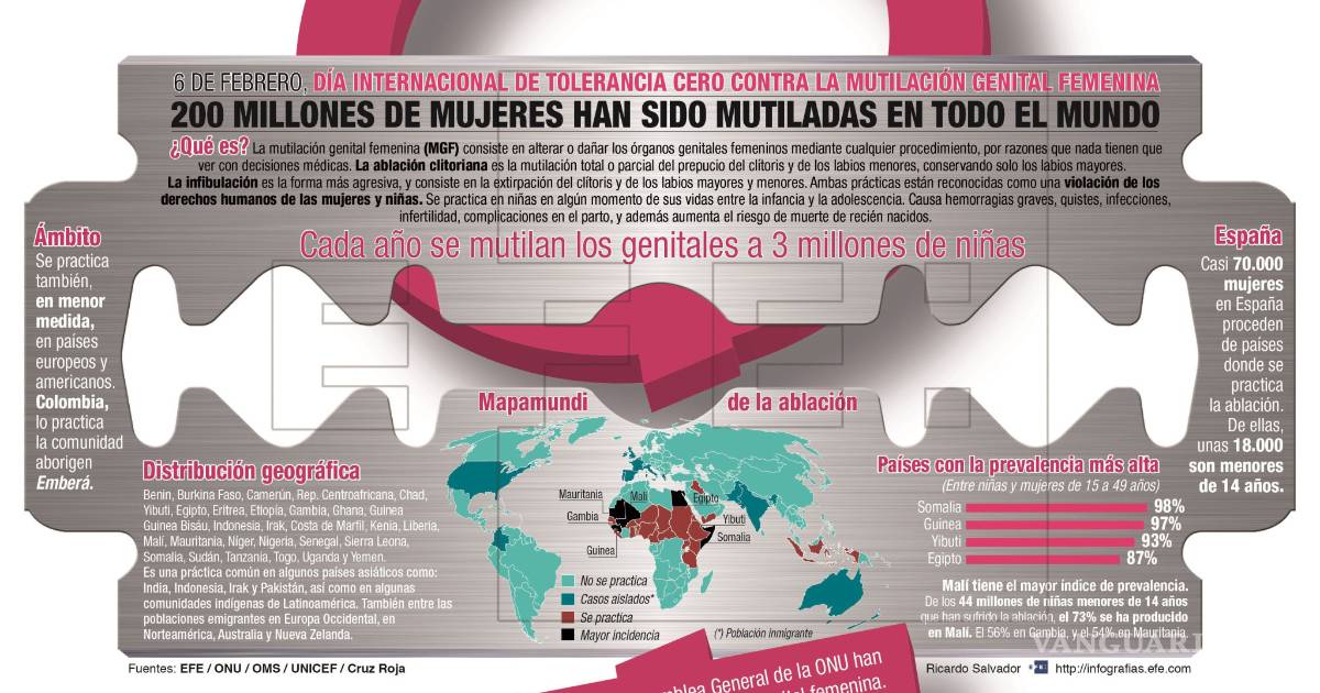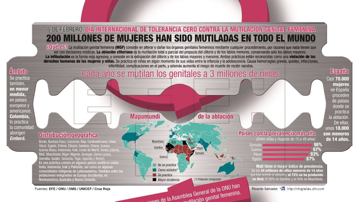 “No hay cifras exactas de cuántas mujeres han sido sometidas a ablación, pero se calcula que al menos 200 millones de niñas y mujeres en treinta países han sufrido esta intervención”, dijo Asha Ismail, fundadora de la ONG Save a Girl Save a Generation.