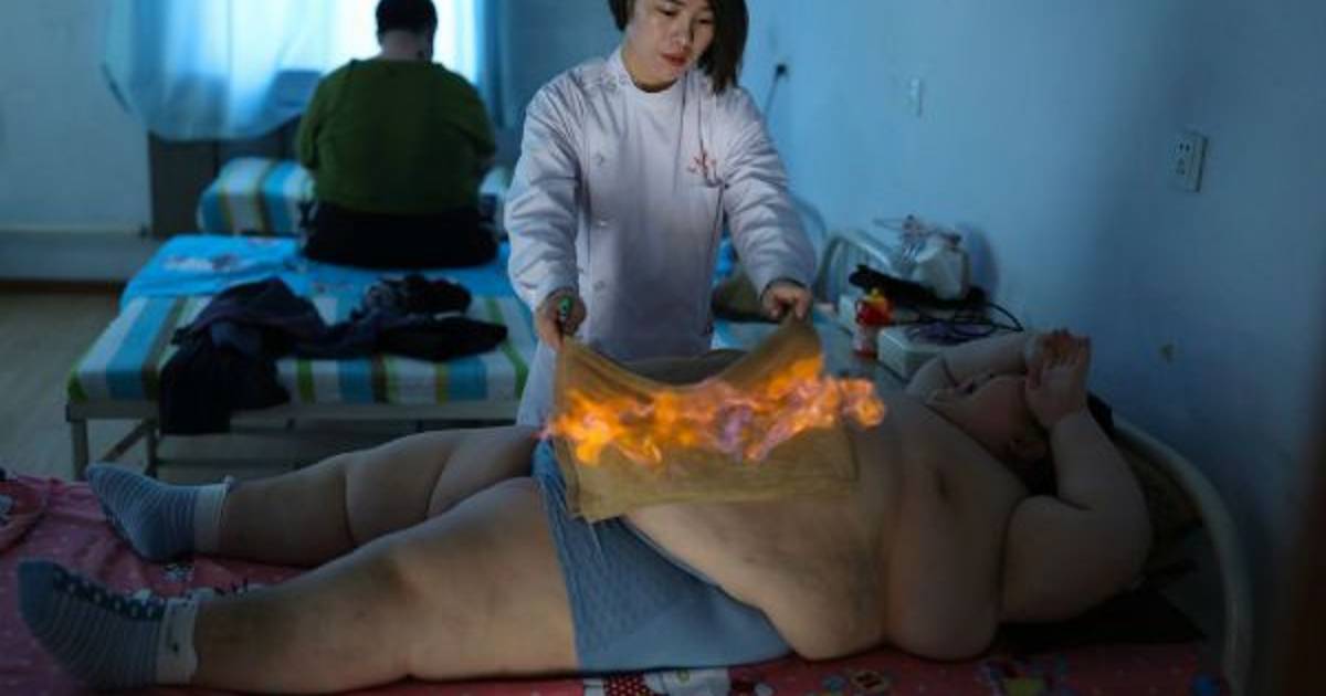 De acuerdo con el diario britanico The Sun, la terapia de fuego se usa típicamente en China para ayudar a los pacientes a perder peso o reducir la hinchazón.