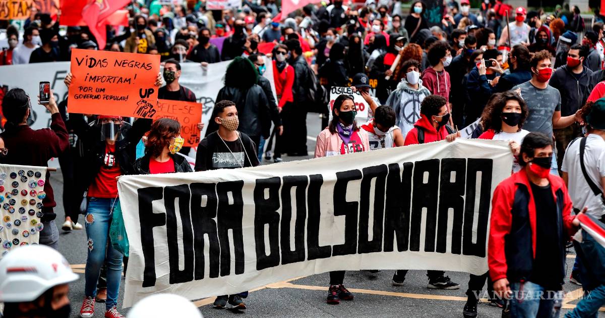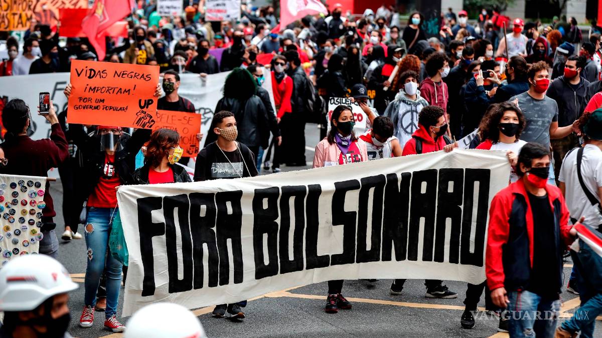 Los contrarios a Bolsonaro, reunidos en torno a movimientos sociales, antifascistas y antirracistas, marcharon en Sao Paulo contra la “política genocida” del mandatario durante la emergencia sanitaria y su retórica “autoritaria”.