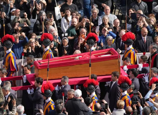Para su último viaje, el Papa Francisco, vestido con vestimentas rojas y una sotana blanca tradicional, será llevado a la Basílica de Santa María la Mayor en las afueras del Vaticano el sábado, donde será enterrado.