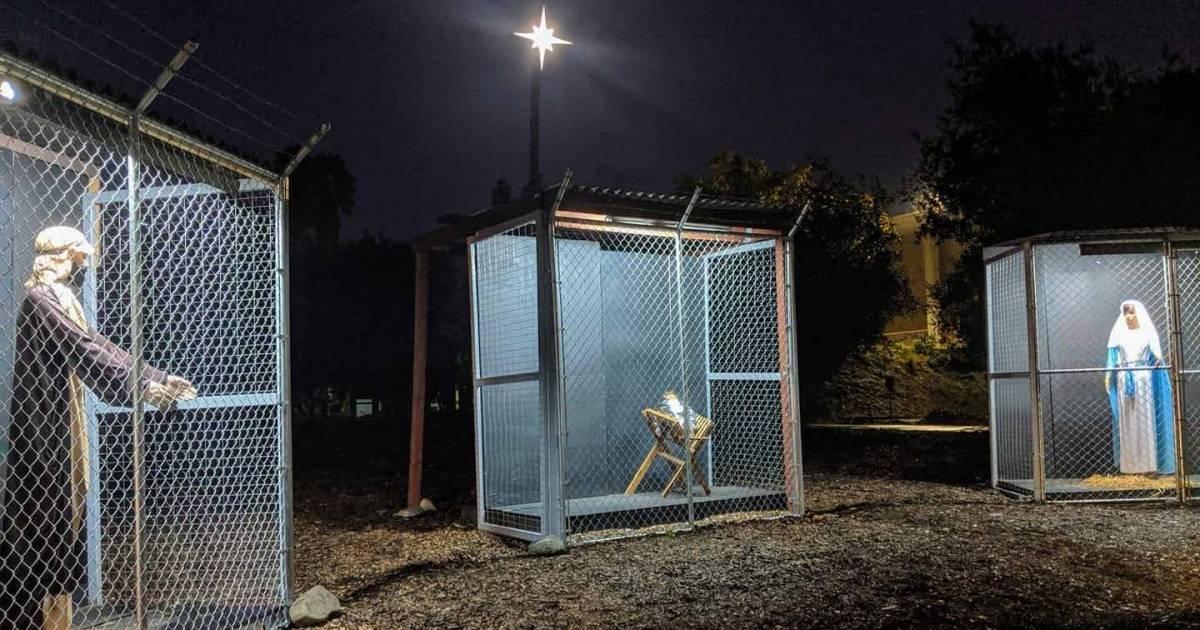 El nacimiento navideño que adorna la entrada de la Iglesia Metodista Unida de Claremont ha causado polémica por representar la política de separación de familias con las imágenes de José, la Virgen María y el niño Jesús.