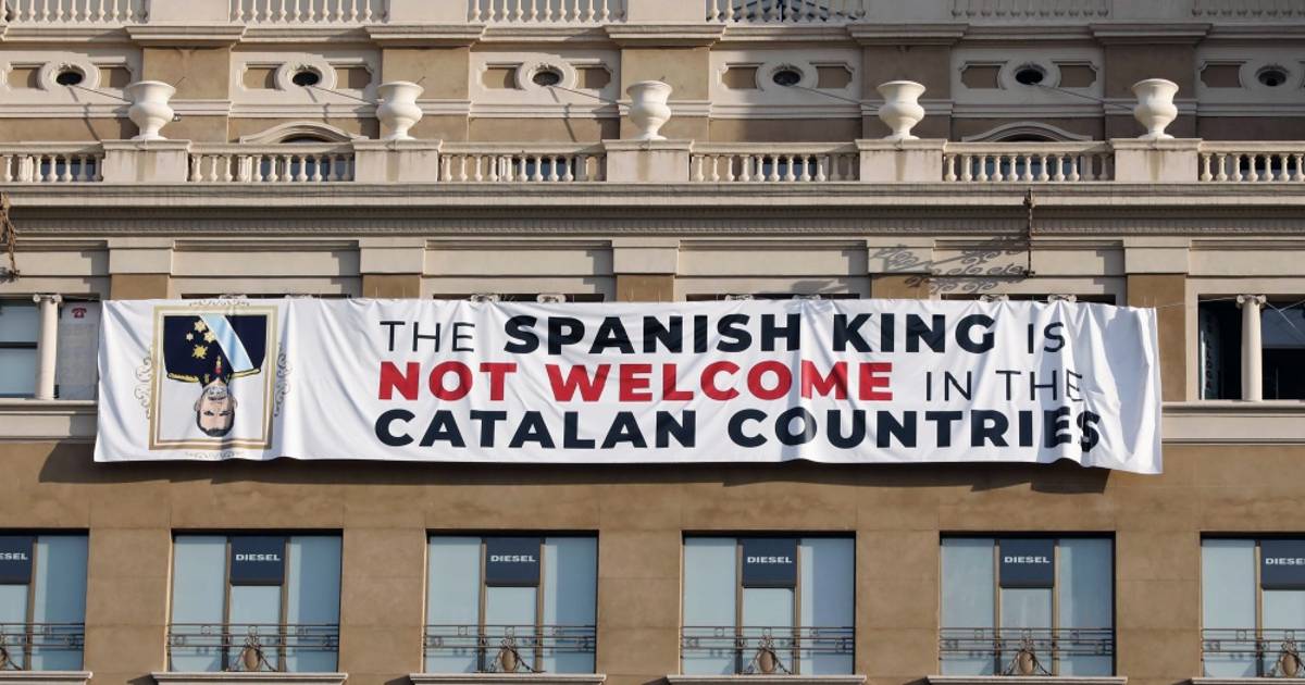 "El rey de España no es bienvenido en los Países Catalanes", rezaba (en inglés) una de las pancartas colocadas en Barcelona contra el monarca, concretamente en la fachada de un edificio de la Plaza de Catalunya, lugar donde se celebró el acto central de homenaje a las víctimas del doble atentado de Barcelona y Cambrils.