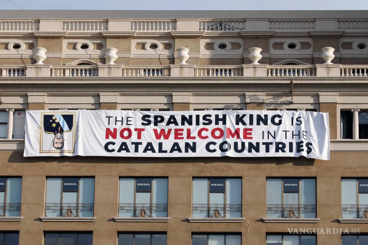 Esa no fue la única pancarta contra el rey hoy en Barcelona. Otra ocupó durante unas horas parte de un edificio de La Rambla, el famoso bulevar de la capital catalana donde una camioneta atropelló el 17 de agosto de 2017 a decenas de personas y mató a 14. En ella aparecía un dibujo de Felipe VI estrechando la mano al rey saudí.