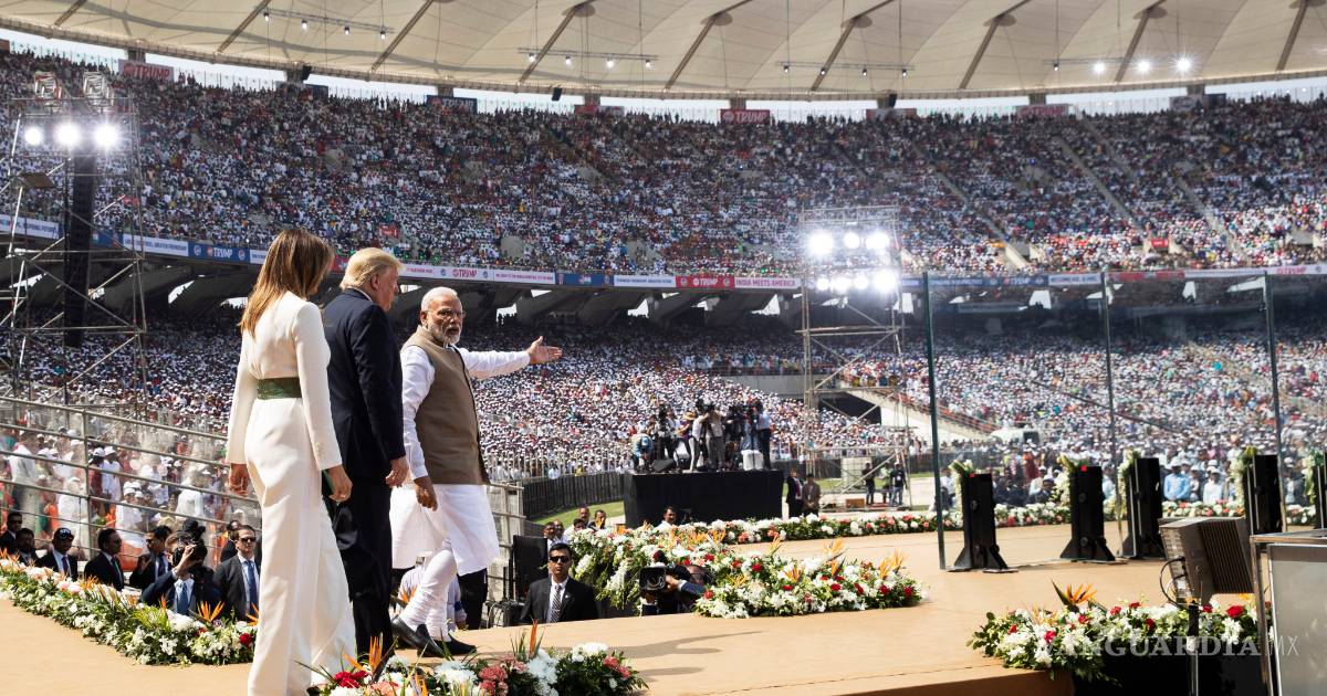 AHMEDABAD, INDIA.- En su primera visita oficial a la India, el presidente de EU, Donald Trump, tuvo un recibimiento multitudinario en el estadio de críquet encabezado por el primer ministro Narendra Modi. De acuerdo a la agencia AP, la visita se centró más en el espectáculo que en la política, justo cuando Trump aspira a la reelección este año y cuyo mitin ofrece una “imagen de prestigio exterior”.