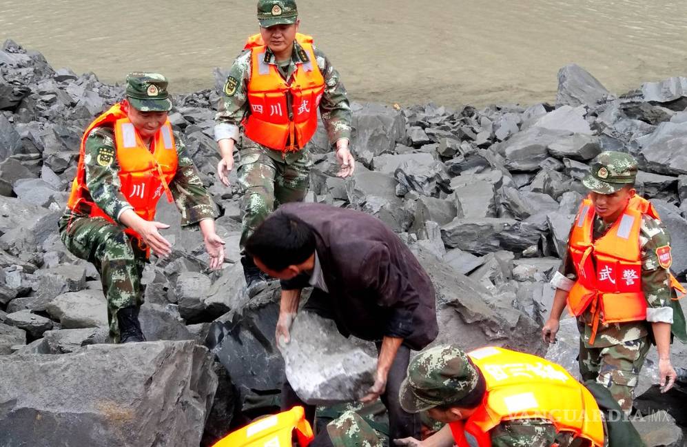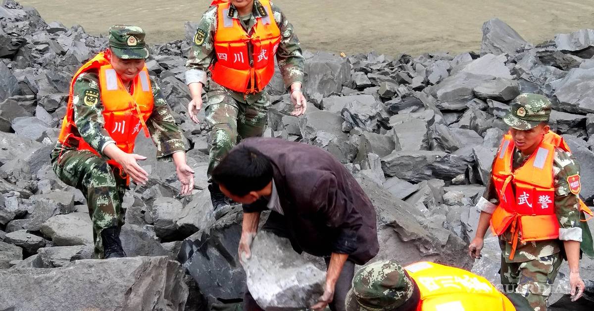 Los escombros cayeron unos 800 metros por una ladera y bloquearon un tramo de dos kilómetros en un río y unos 1.6 kilómetros de camino, reportó la agencia oficial de prensa Xinhua.