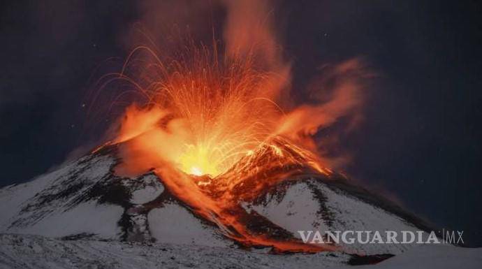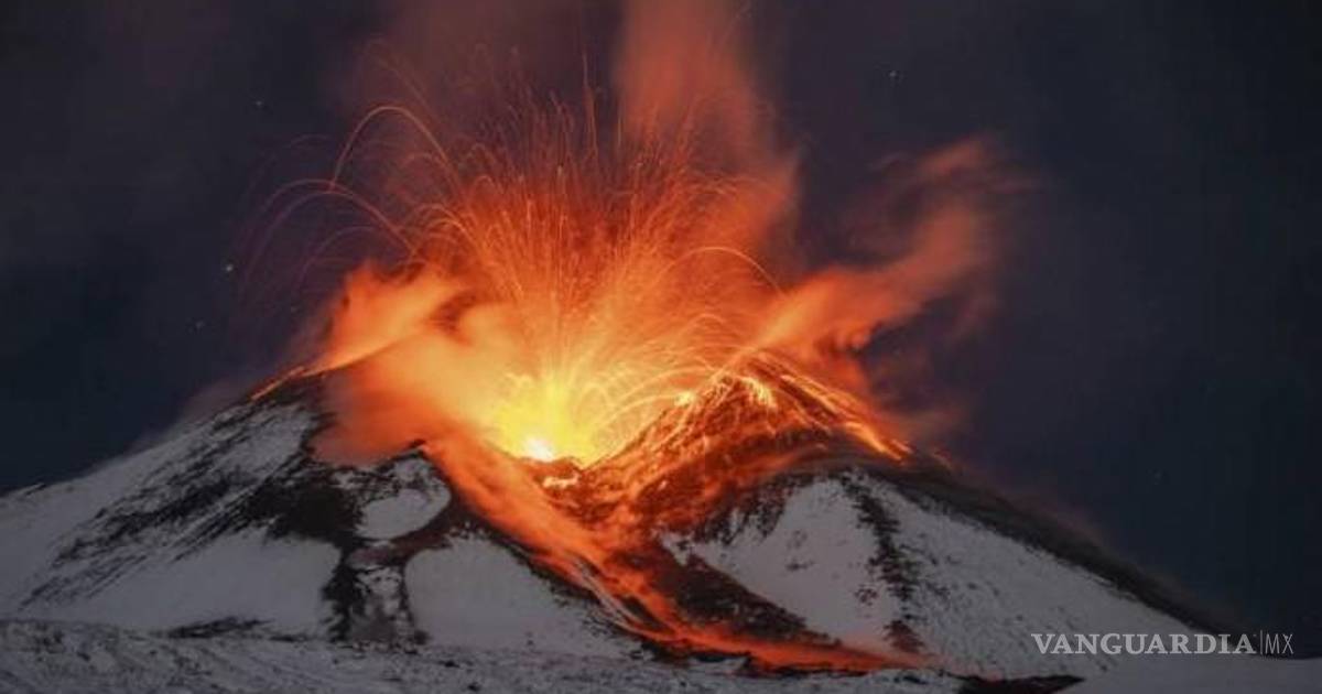 Registran fuerte erupción en el volcán Etna en Italia; espectaculares olas de lava se mezclan con la nieve