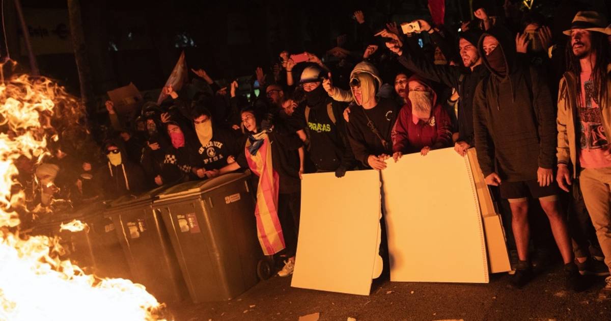 Las fuerzas de la policía regional de Cataluña reprimieron a grupos independentistas en una manifestación de protesta por la sentencia judicial en la que nueve líderes soberanistas fueron condenados a penas de prisión por sedición.