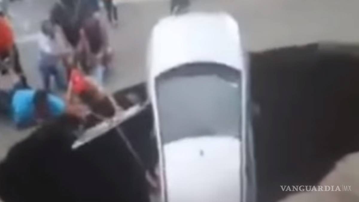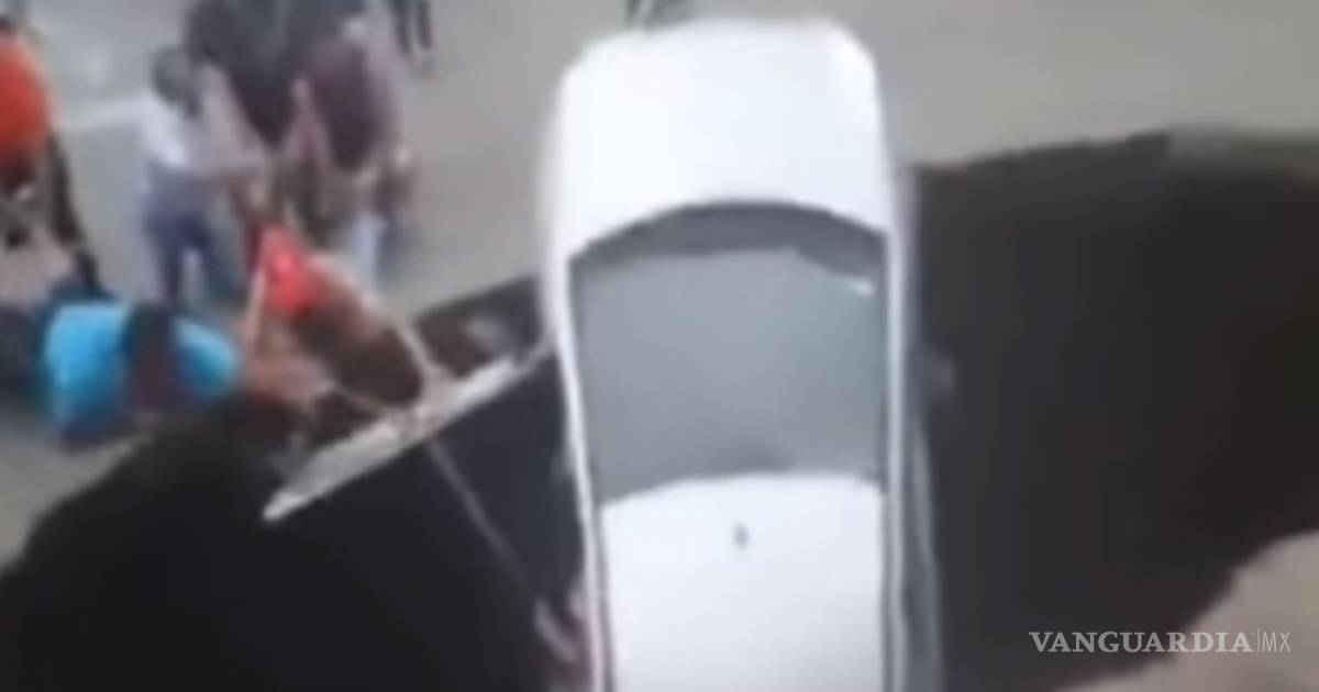 Mientras el auto parecía estar a punto de caer al fondo del agujero, un grupo de personas hizo todo lo que pudo pasa sacar a los dos adultos y a la niña de dos años de edad que sufrieron el incidente.