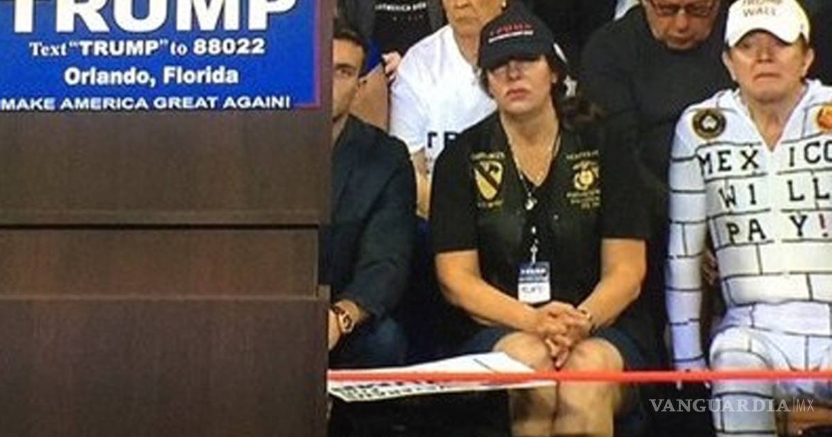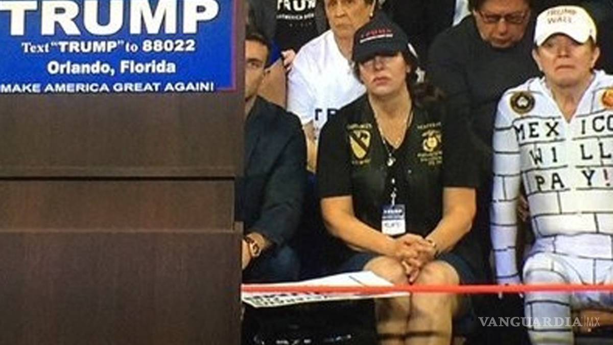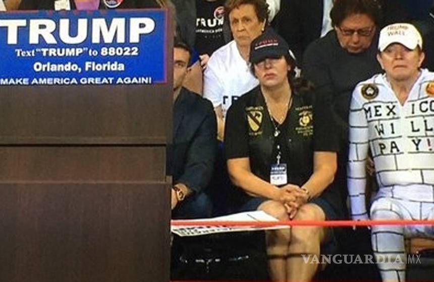 El hombre disfrazado del muro estuvo sentado directamente al lado de Trump durante el evento del empresario y aspirante a la candidatura presidencial por parte del partido Republicano, mismo que se llevó a cabo en Florida.