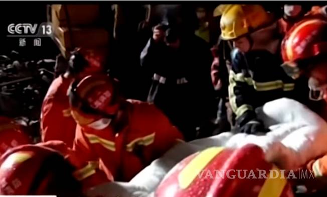 Socorristas rescatan a niña que sobrevivió en brazos de sus padres muertos tras derrumbe en China