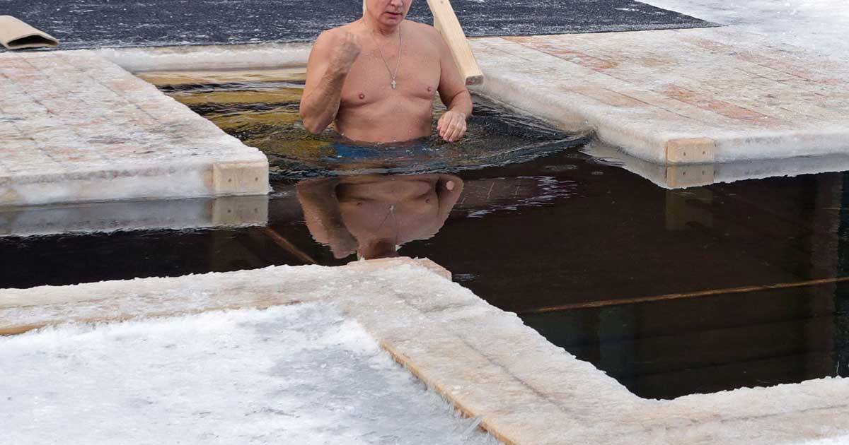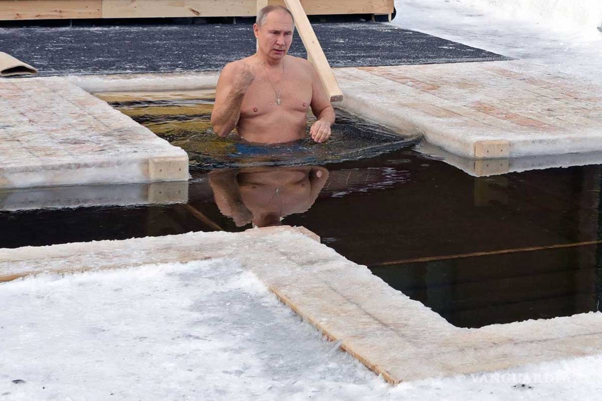 El presidente ruso de 68 años mostró su salud y condición física al entrar en una piscina frente a una gran cruz de hielo y rodeada de nieve y sumegrirse durante unos instantes en agua helada para celebrar el rito ortodoxo y demostrar al mundo su vitalidad.