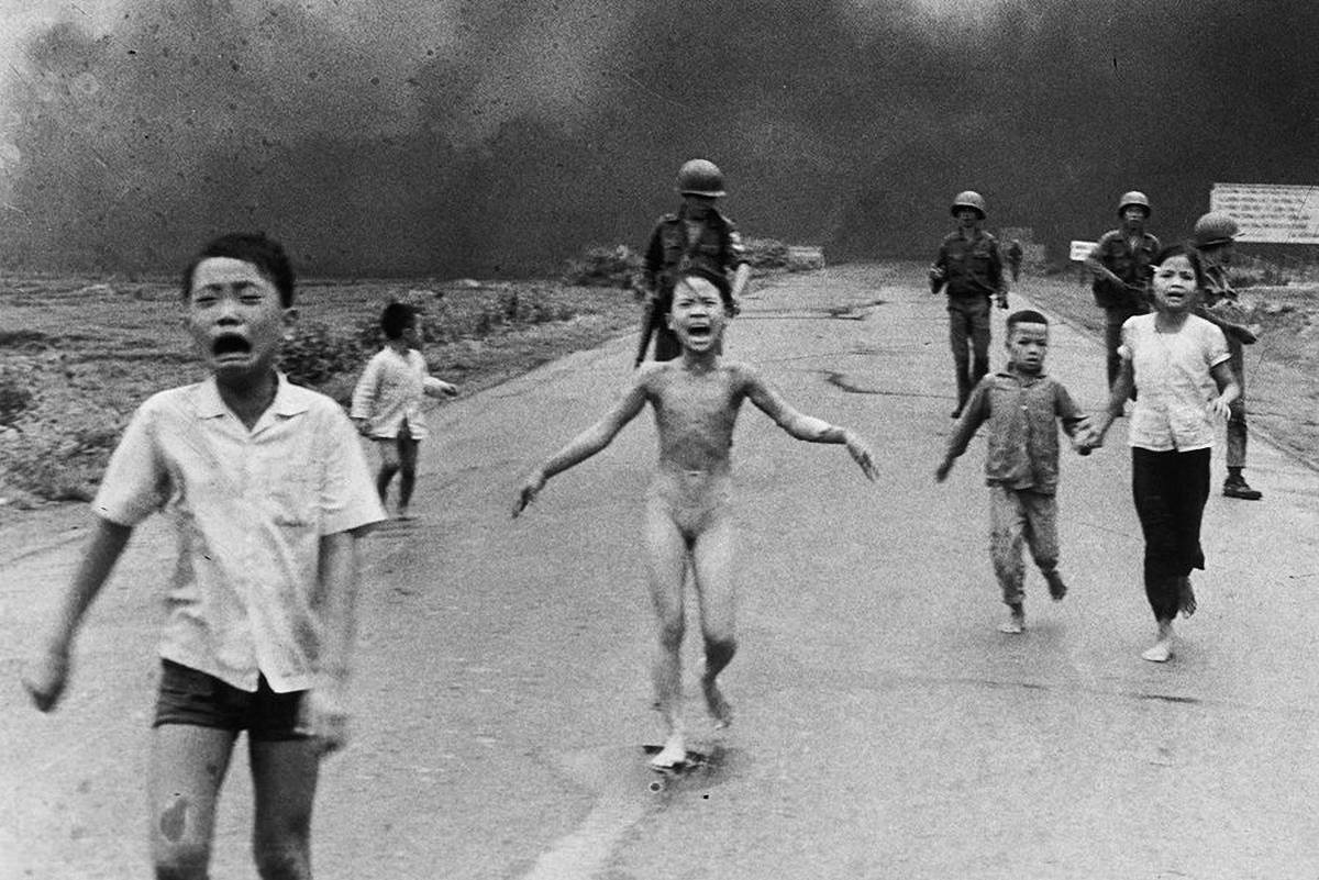 En la instantánea se aprecia en el centro a una niña desnuda, Phan Thi Kim Phúc, que corre llorando con quemaduras en el cuerpo y rodeada de otros cuatro niños cerca de la localidad de Trang Bang.