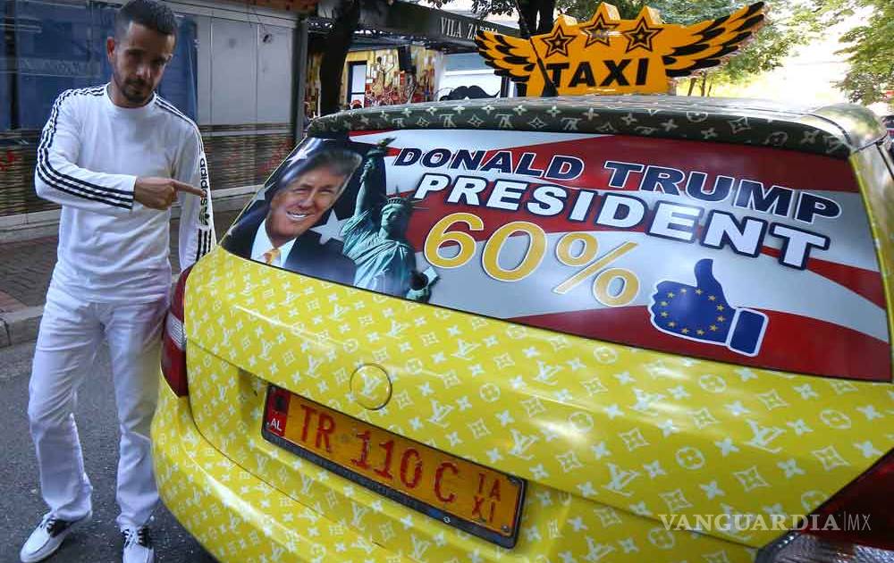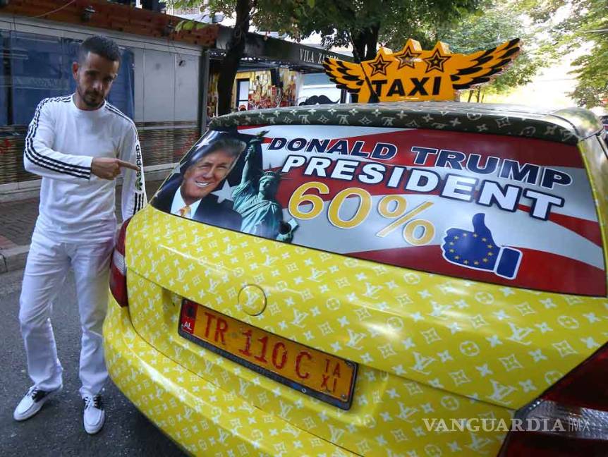 ALBANIA.- Un taxista albanés decoró su vehículo con fotos del candidato republicano, Donald Trump, argumentando que el magnate estadounidense le ha traído prosperidad en los últimos días.