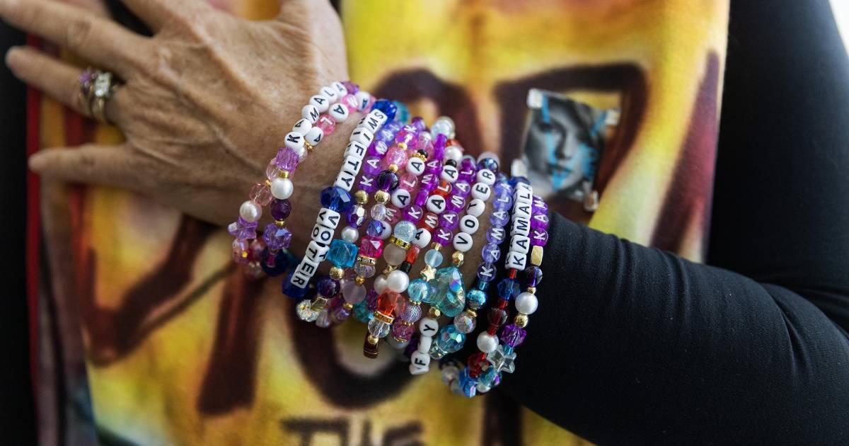 Breker, quien vive en Fargo, Dakota del Norte, estaba a favor de que el presidente Joe Biden encabezara la candidatura demócrata, pero dijo que no se veía a sí misma ni a sus compañeras delegadas haciendo pulseras de la amistad para mostrar su apoyo. Cuando Harris entró en la contienda después de que Biden abandonó la candidatura, “la energía aumentó mucho”, dijo Breker y agregó que las pulseras de la amistad aprovechan “ese poder femenino que Taylor Swift hace aflorar en las mujeres y que, sin duda, Kamala también está haciendo aflorar en las mujeres y las niñas”.