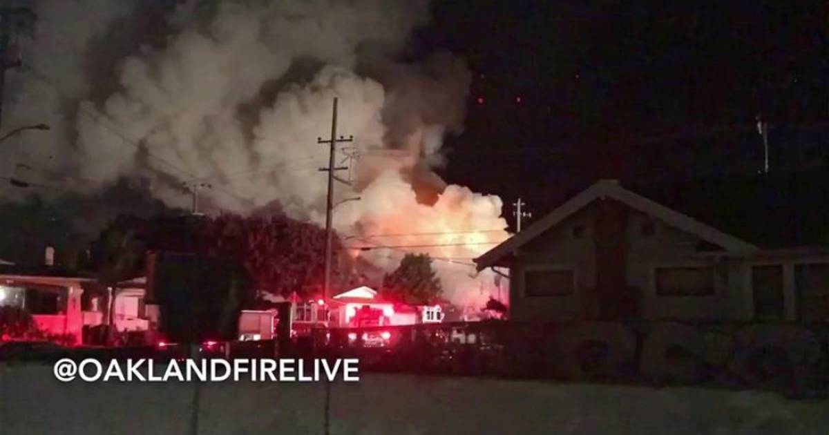 Los bomberos de Oakland tuitearon videos de llamas saliendo por el techo.