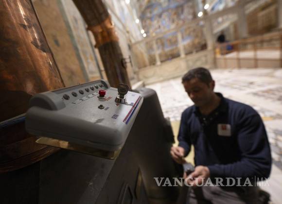 Los trabajadores del Vaticano instalaron en la Capilla Sixtina la estufa en donde se quemarán las papeletas durante el cónclave que se llevará a cabo el 7 de mayo para la elección del nuevo papa