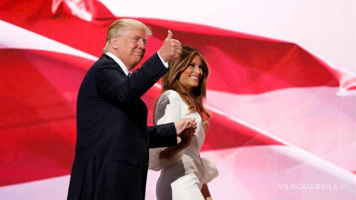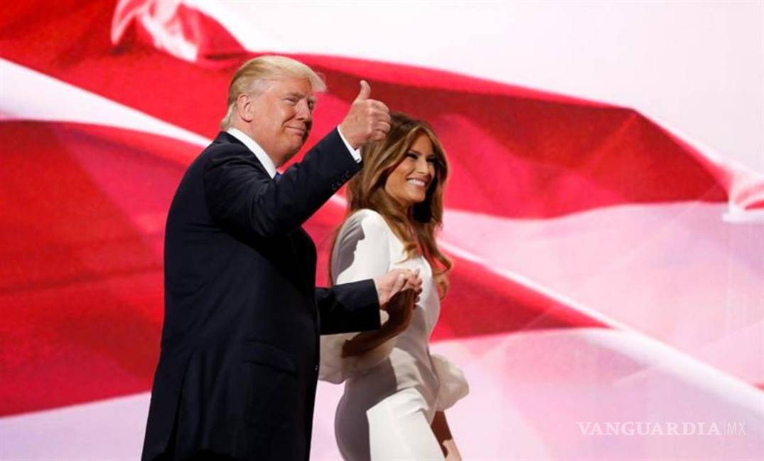 La "coronación" de Trump ocurrirá también tras la sorprendente aparición que hizo el magnate este lunes en el pabellón Quicken Loans, que alberga la convención, donde presentó a su esposa, Melania, como "la próxima primera dama de EU.".