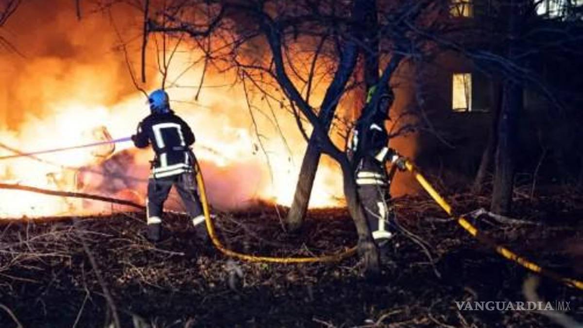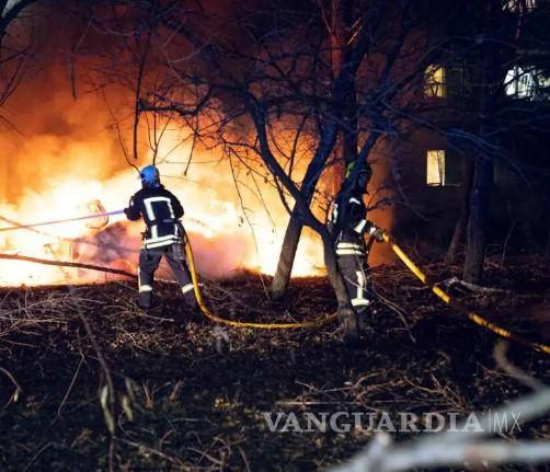 Las fotografías publicadas en Telegram por el Servicio Estatal de Emergencias de Ucrania mostraron a los bomberos luchando contra un incendio que consumía automóviles y a los rescatistas sacando a personas de un edificio.