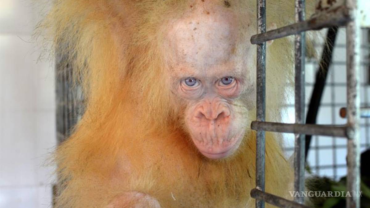 Alba, rescatada en un pueblo de la parte indonesia de la isla de Borneo, es el primer orangután albino de las islas de Sumatra y Borneo del que tiene conocimiento la organización y pertenece a una especie en peligro de extinción.