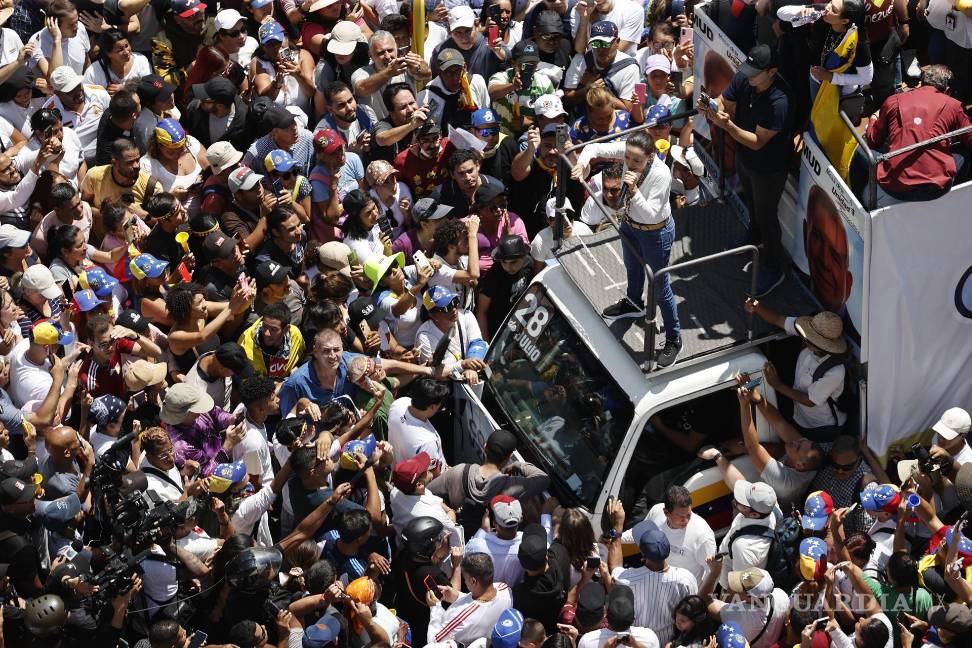 En Caracas, en tanto, la imagen de Machado surgiendo de entre la multitud protegida por una chaqueta con capucha para subir al camión donde se realizaban los discursos, conocido como Edmundomóvil, supuso una inyección de entusiasmo para los manifestantes.
