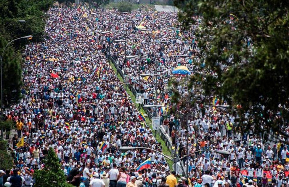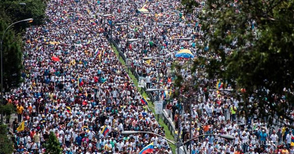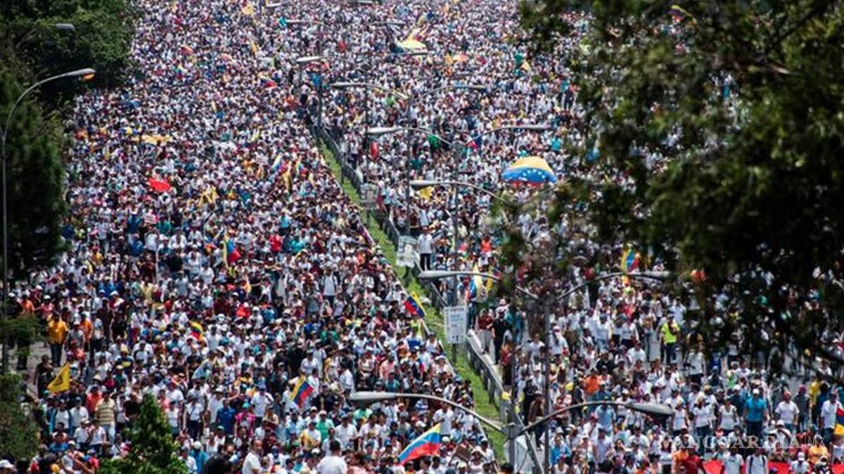 CARACAS, VENEZUELA.— Decenas de miles de opositores marcharon el miércoles en Venezuela para protestar contra el gobierno del presidente Nicolás Maduro en movilizaciones multitudinarias que han dejado dos jóvenes muertos, más de un centenar de heridos y afectados por gases lacrimógenos y al menos 500 detenidos.