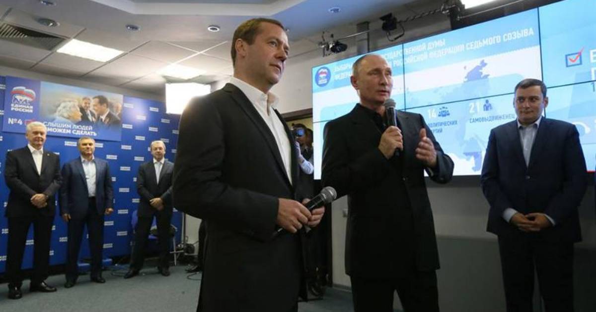 Victoria del Partido Político Rusia Unida fortalece a Putin y Medvedev