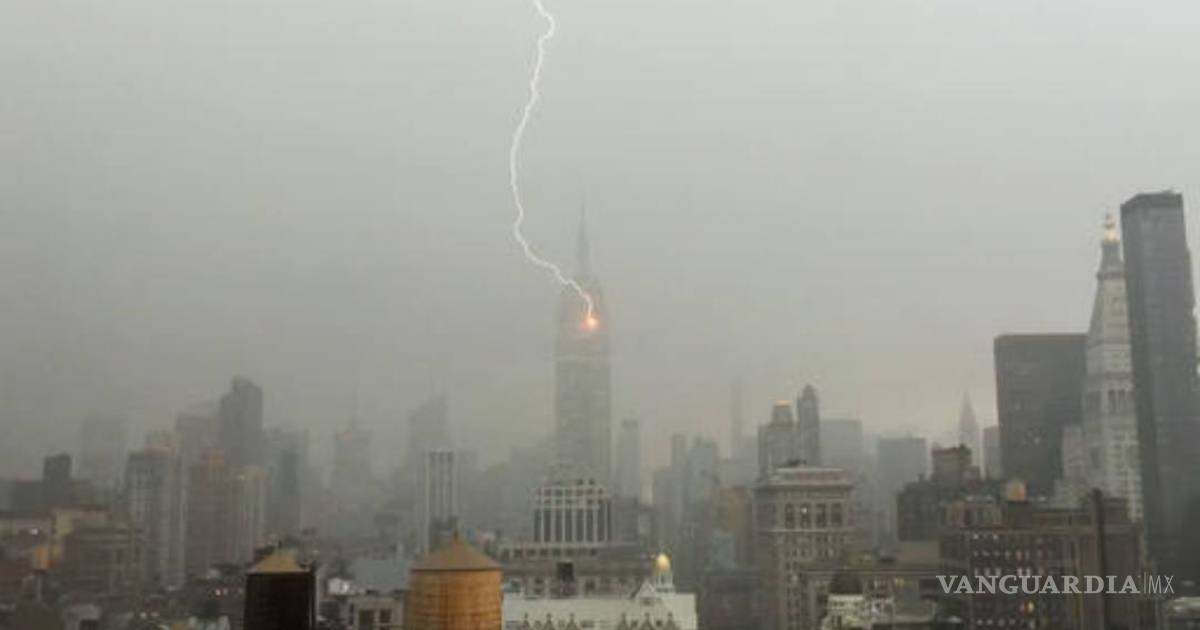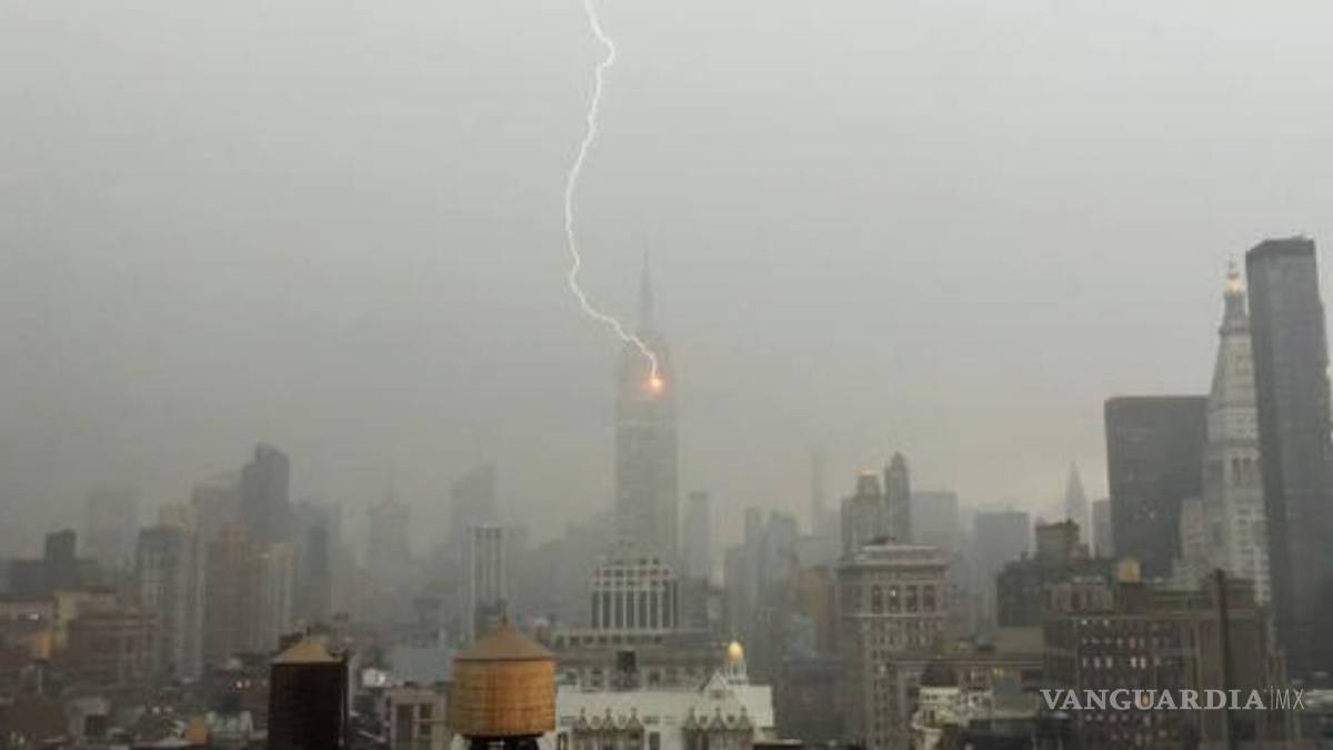 No es raro que caigan rayos en el Empire State. El sitio en internet del edificio explica que la estructura tiene un pararrayos y que es alcanzado por 23 rayos al año, en promedio.