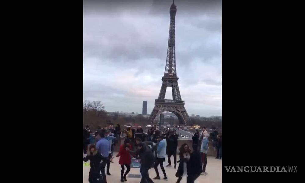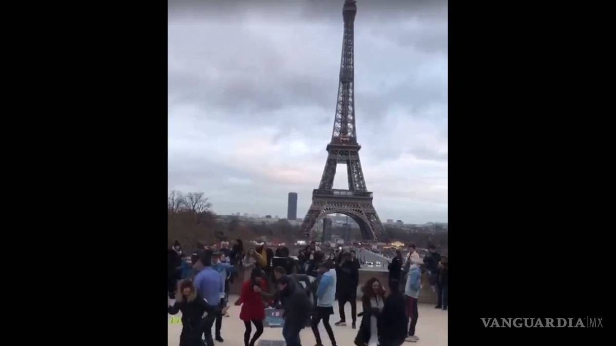 La grabación muestra que un grupo de turistas mexicanos que se encuentran en las inmediaciones de la Torre Eiffel, comienzan a bailar 'La Chona' en medio de otros turistas que se encontraban en el momento.