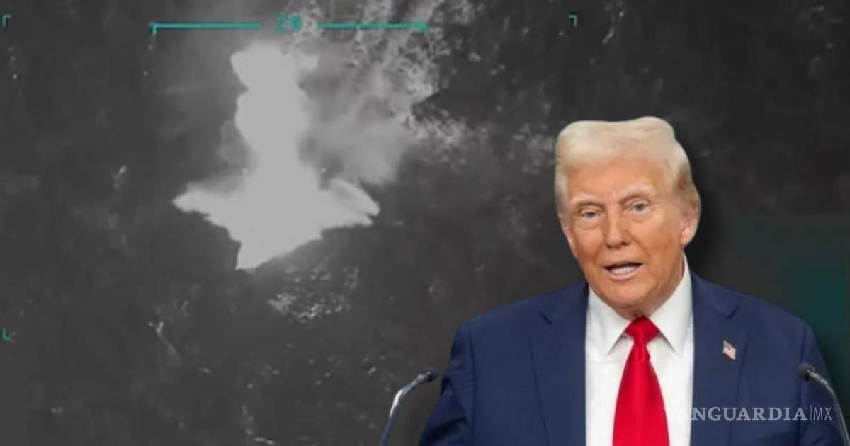 De un momento a otro, la embarcación recibe un ataque que la hace estallar y luego se hunde, la grabación de 14 segundos fue acompañada de un video del anuncio de Trump desde la Casa Blanca.